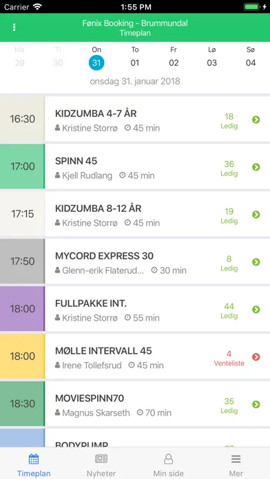 Bruk telefonen til å booke, kansellere eller sette deg på venteliste til gruppetimer hos Fønix Treningssenter.