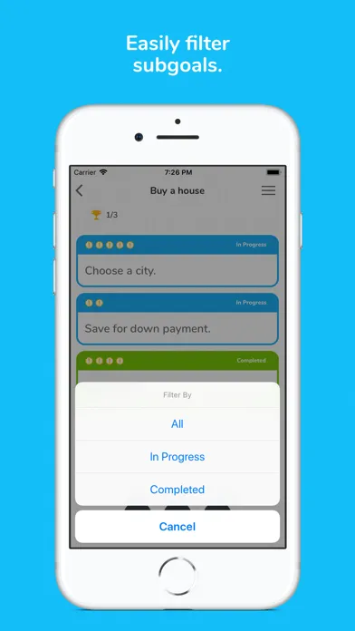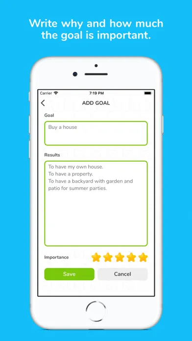 - restrictions on how many goals can be added, to have you choose what's most important to you;