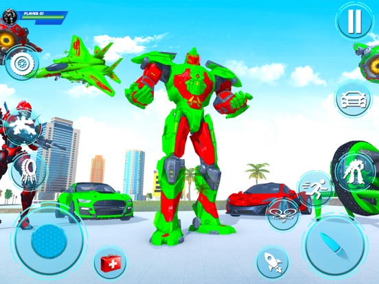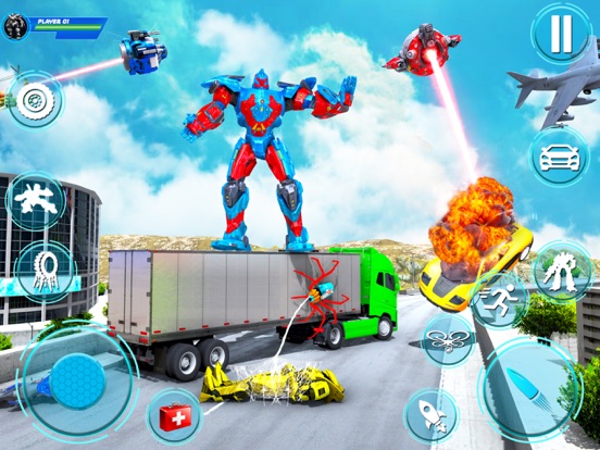 Step into the world of Superhero Robots and fight in intense Robot War Games! Experience city survival missions, high-speed robot shooting battles, and thrilling mech transformations into a car, flying drone, and spider wheel!