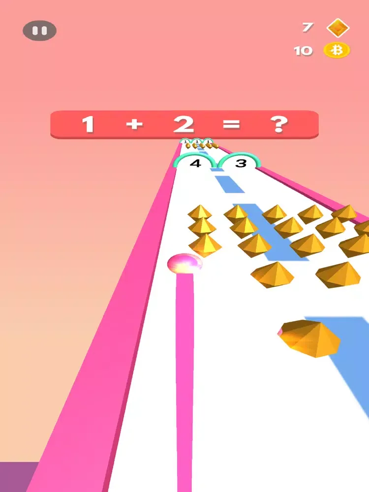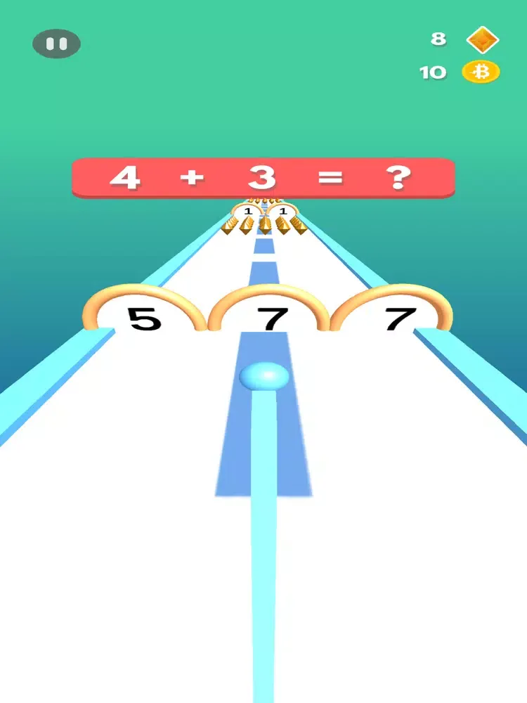 Math Ball 3D is addictive fun math learning game for all age groups. Solve the Equation before the ball crosses the hurdle and slide the ball to correct option to pass through that hurdle to move on to next step. Can you solve all the equations given in the level?