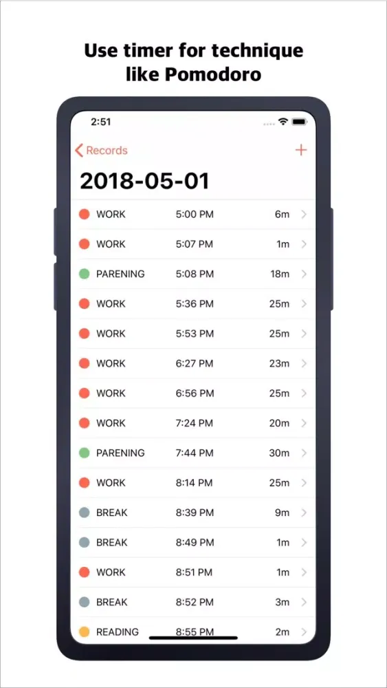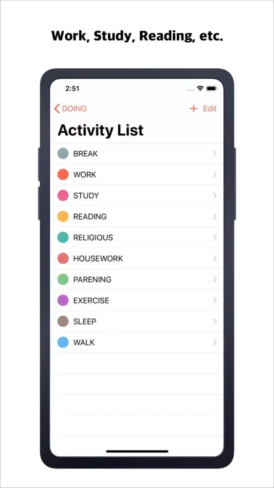 * Activity list management (work, study, reading, parenting, exercise, etc.)