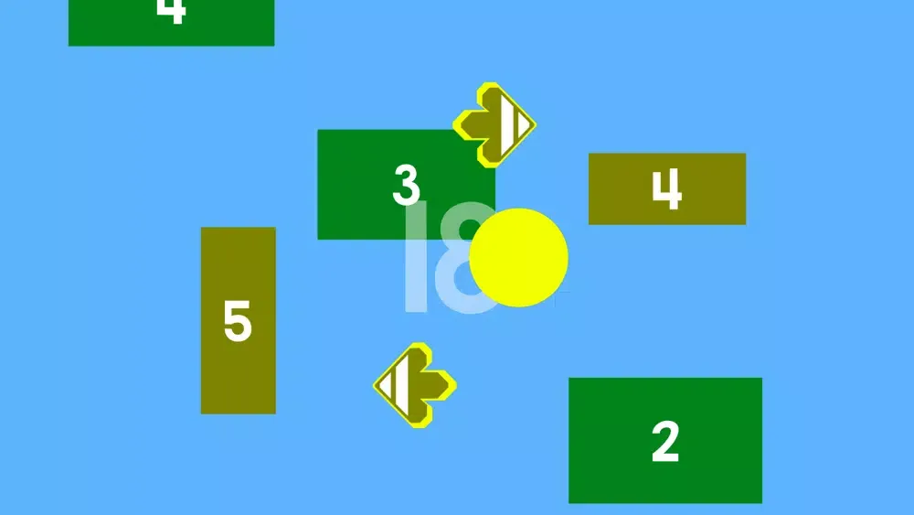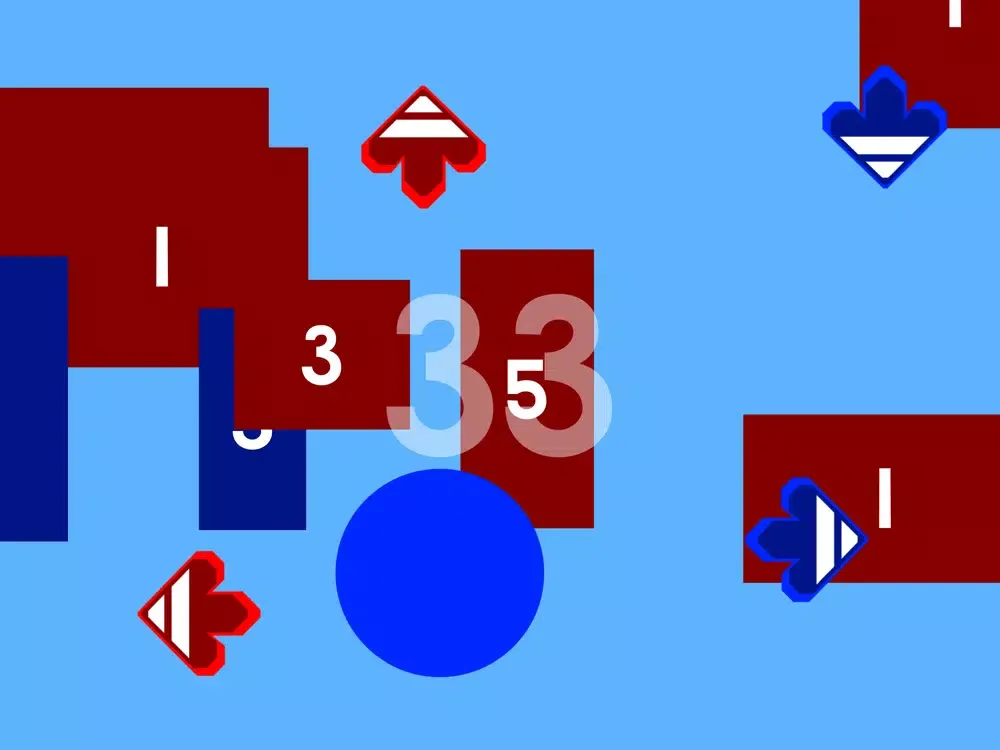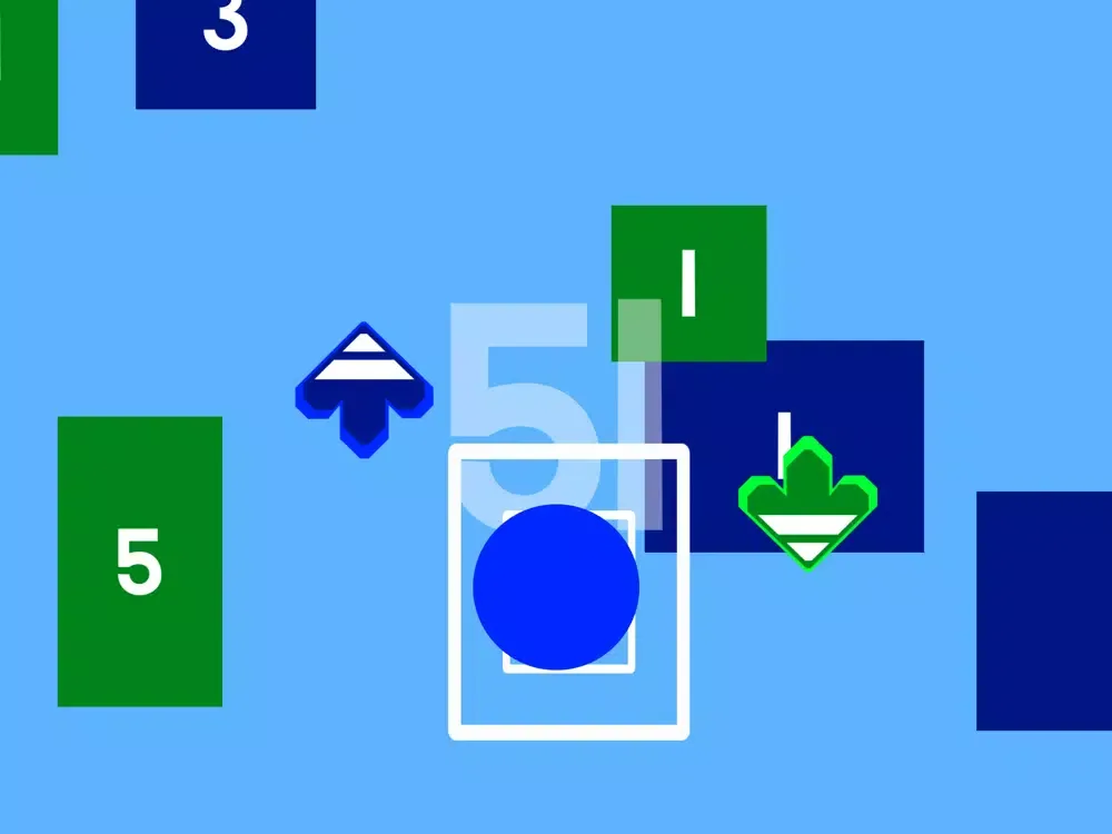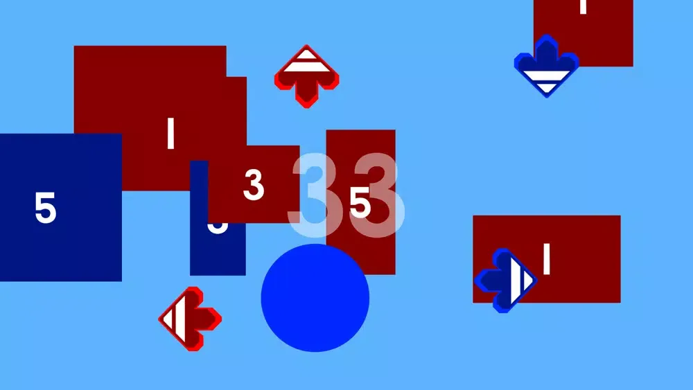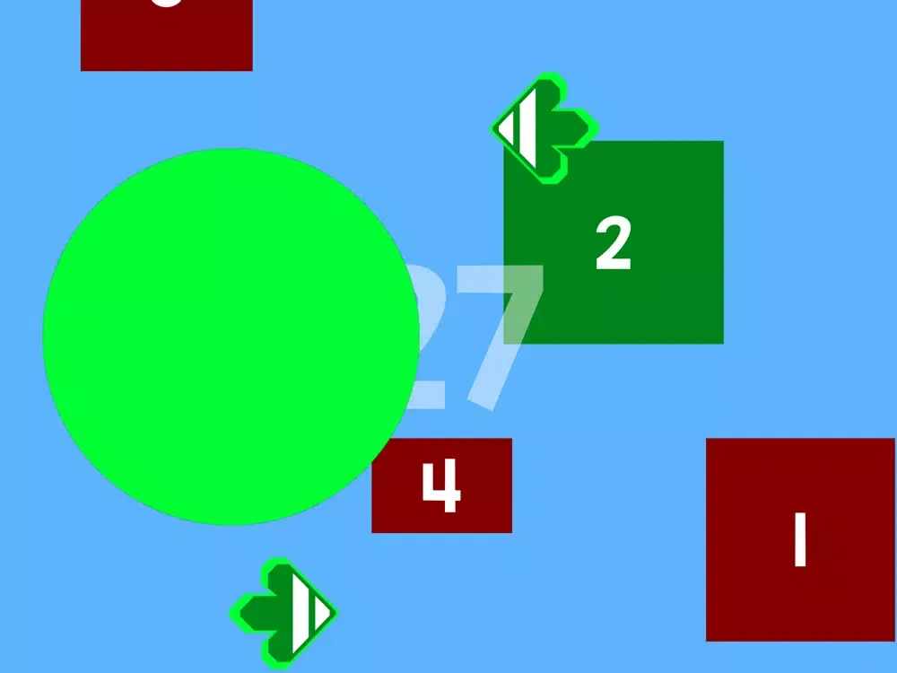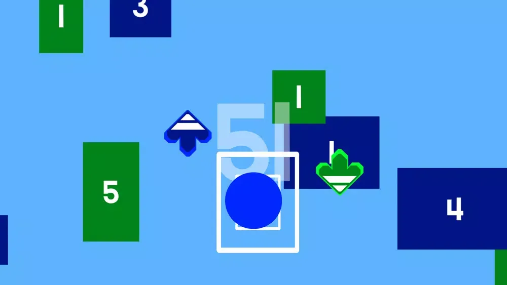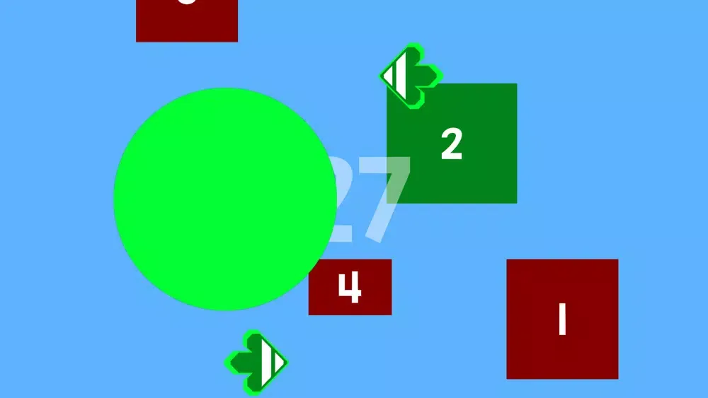 Not moving will increase the size of your player over time, increasing the difficulty of navigating. When you reach a certain size, a Down Sizer will appear every few seconds to help shrink your player.