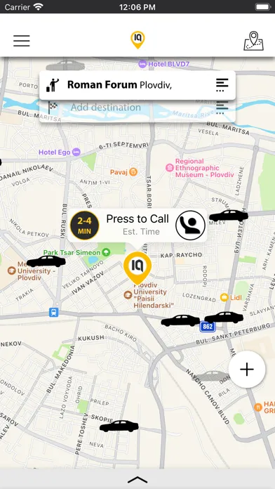 - Преглед на маршута и на таксито в реално време на картата, докато се предвижда към Вас;