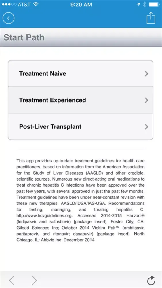 This app provides up-to-date treatment guidelines for health care practitioners, based on information from the American Association for the Study of Liver Diseases (AASLD) and other credible, scientific sources. Numerous medications to treat chronic hepatitis C infections have been approved over the past few years. All treatment guidelines are intended for ADULTS only.