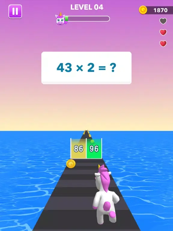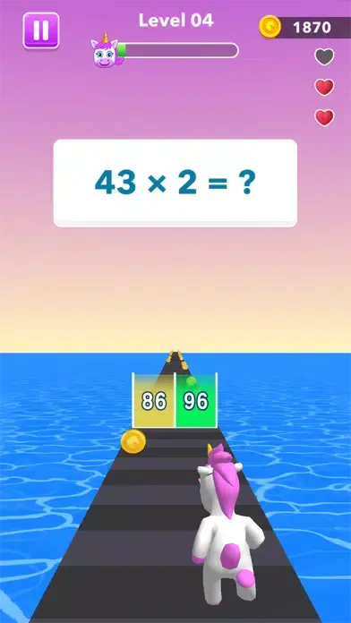 -Unicorn Math run games will give you lot of question about the addition, Subtraction, multiplication and division.