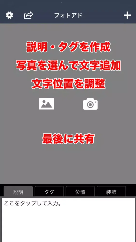 フォトアド「写真に文字を追加+説明+タグ」そしてSNSへ के बारे में