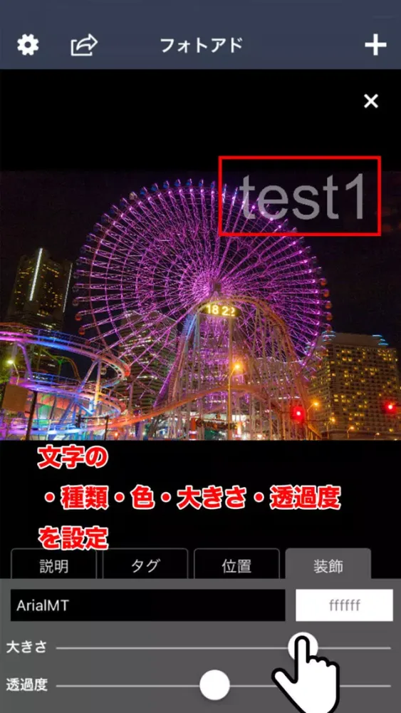 フォトアド「写真に文字を追加+説明+タグ」そしてSNSへ