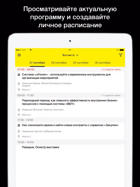 • Актуальная программа мероприятия с информацией о каждом выступлении