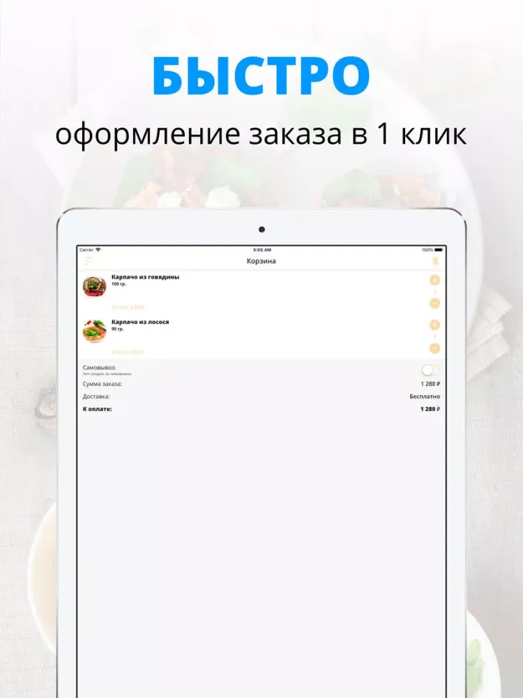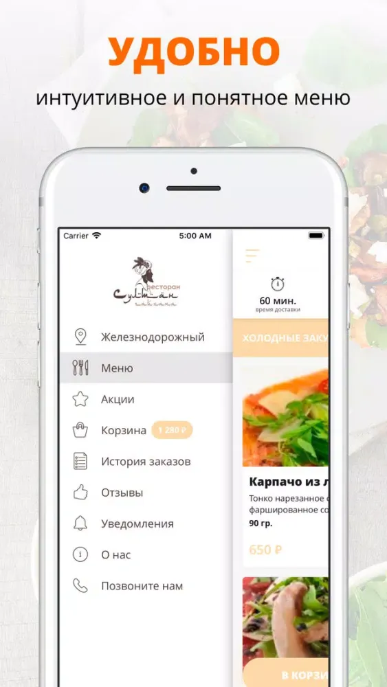 - Отслеживайте статус и время заказа!