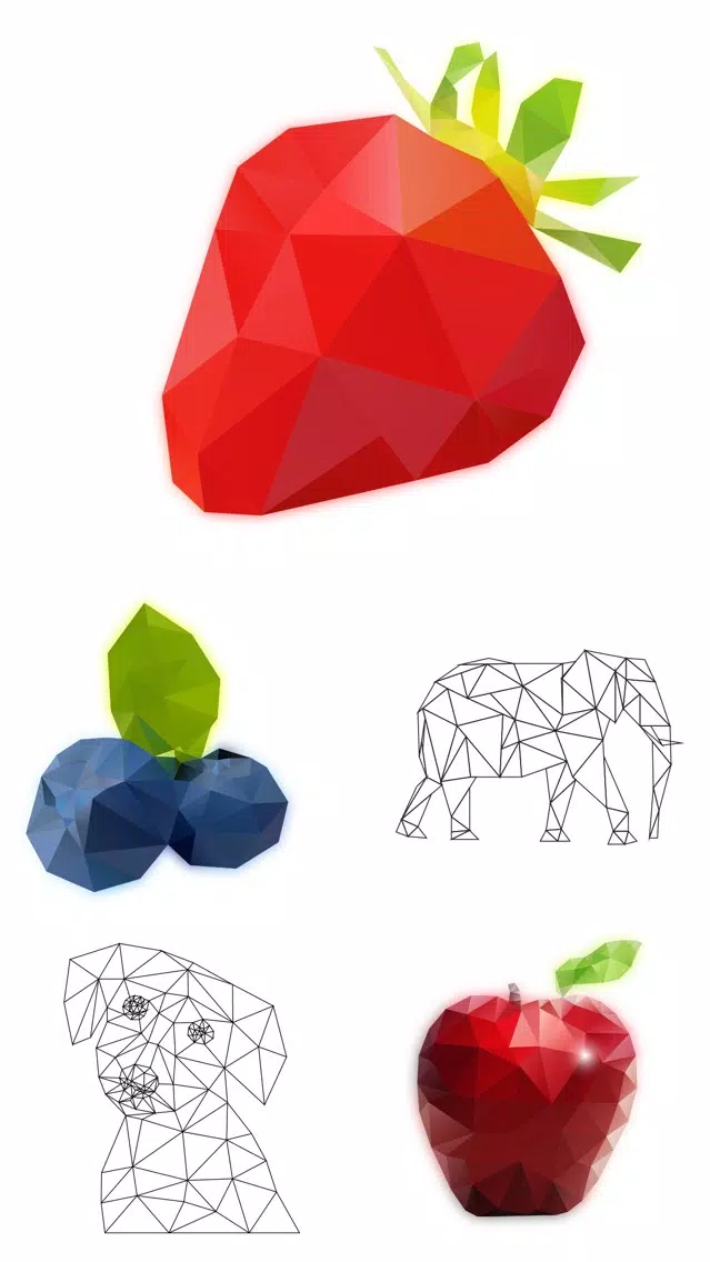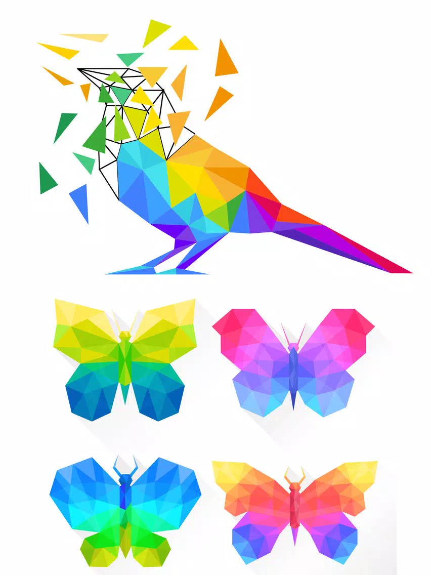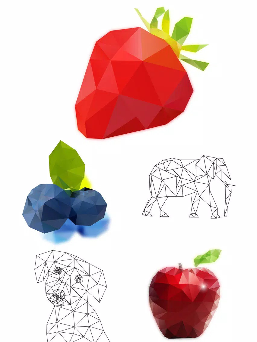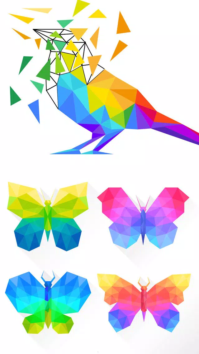 • Beautiful and stunning low poly images to color.