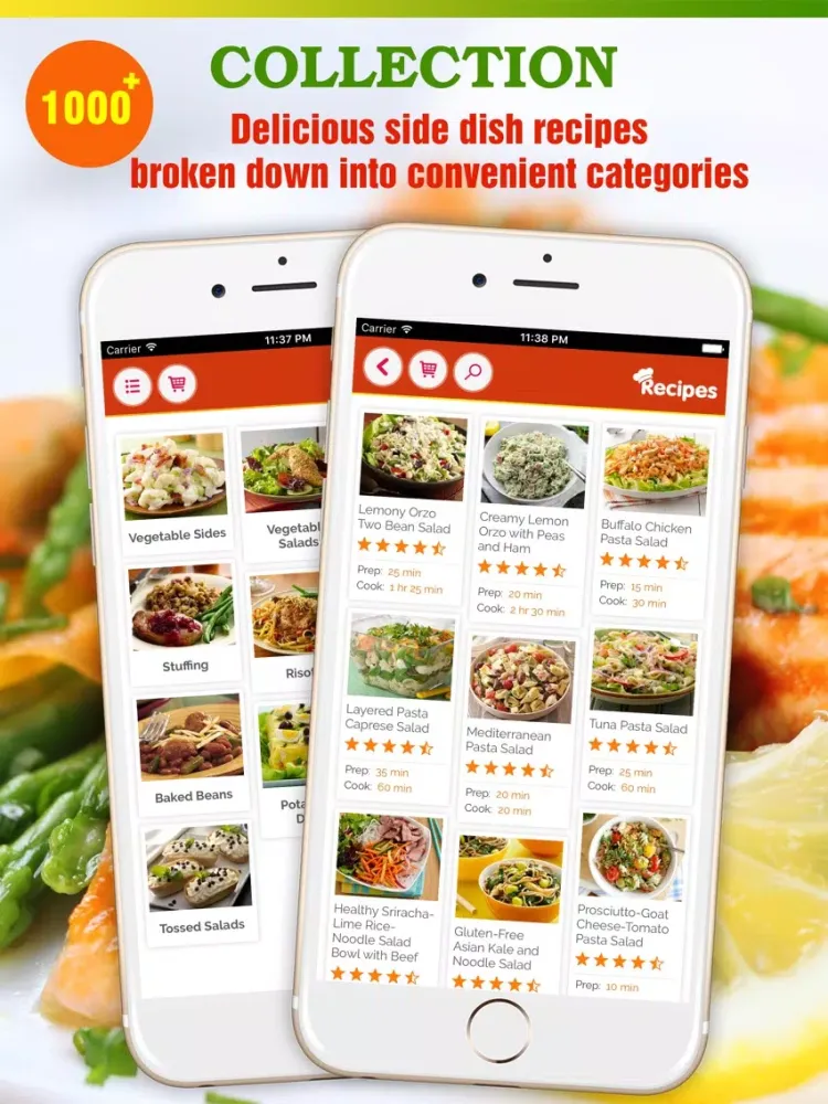 All recipes are presented in the application with more detail about ingredients and directions. This app makes for an easy way to cook for two or more people. With this robust and enlightening Side Dish Recipes App, Not only will you find over 1000+ delicious side dish recipes, but you'll also find many recipes broken down into convenient categories according to they type of dish it is.