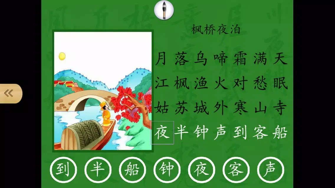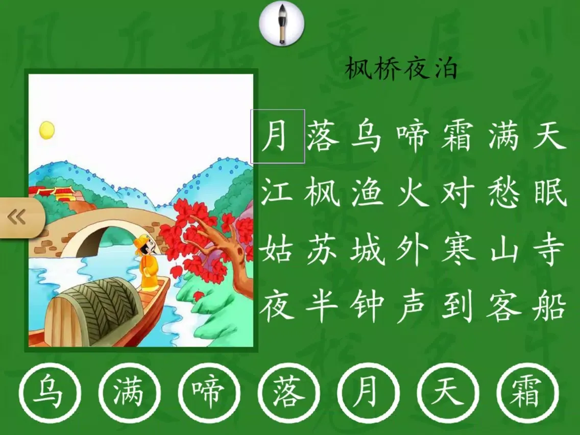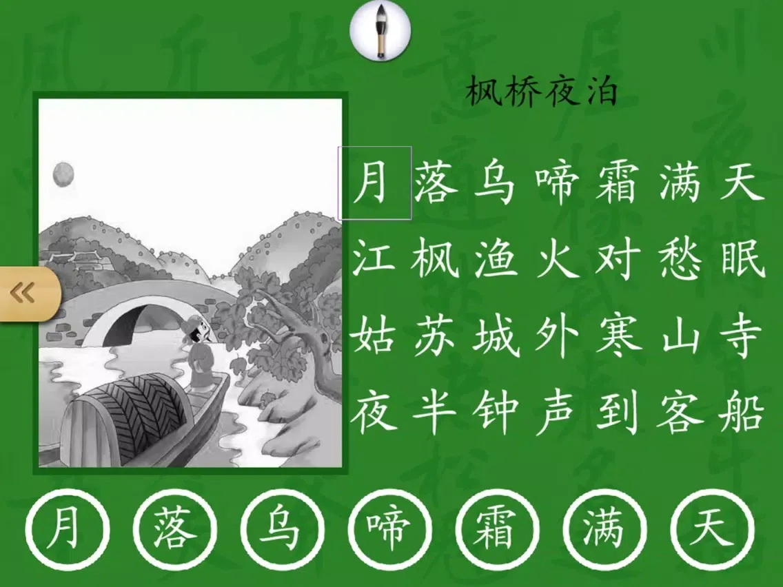 在练习环节,孩子顺序点读唐诗的每个字;