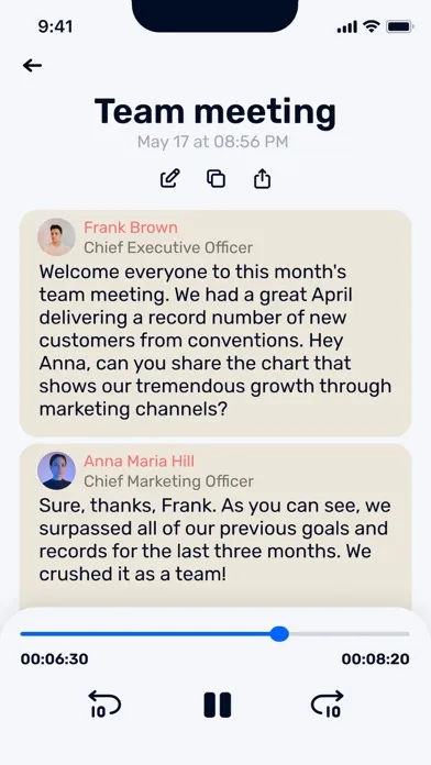 Utilizing cutting-edge Artificial Intelligence technology, AI Transcribe - Voice Recorder serves as a potent tool that converts audio content into accurate and easily understandable transcriptions. With a simple tap, users can promptly transform voice memos, interviews, meetings, lectures, podcasts, and videos into clear, concise text that can be edited, searched, and shared effortlessly.