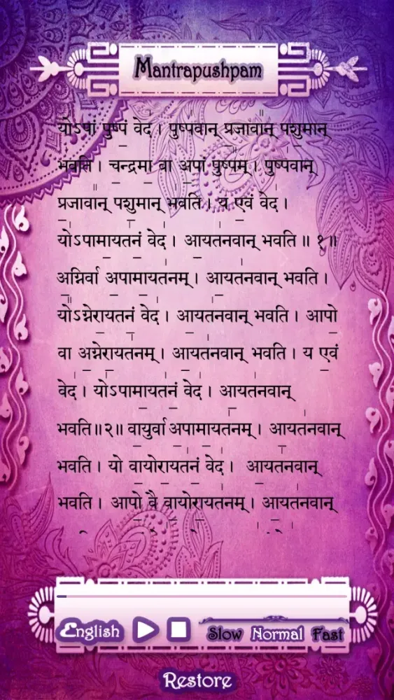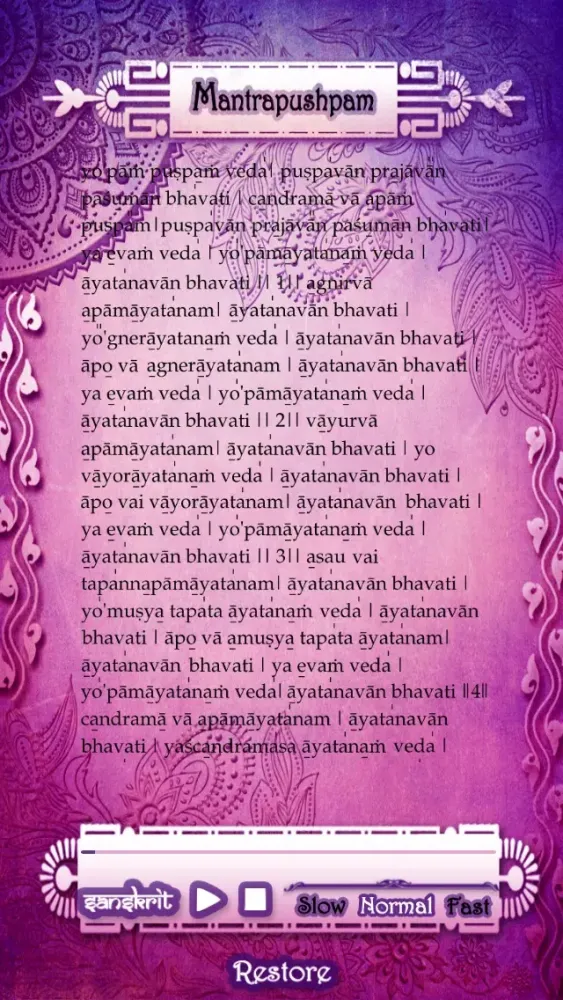 Our app makes the above procedure so simple in providing you the mantras in 2 languages – English and Sanskrit with audio enabled. The text gets auto scrolled as you read or follow the mantra, which makes learning much easier.