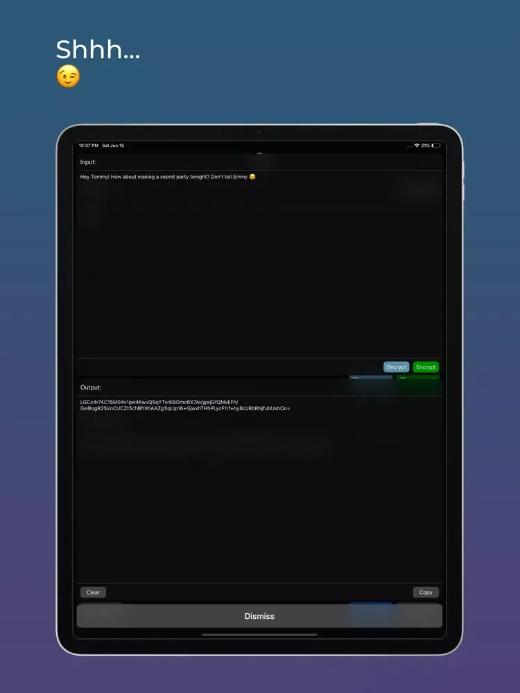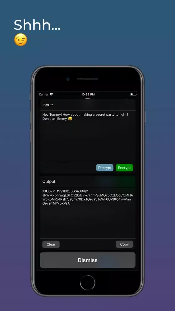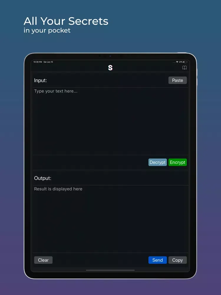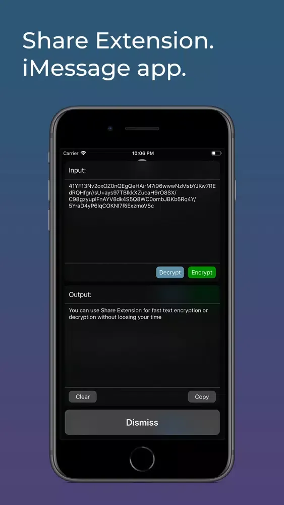 This app also allows you to use Share extension for fast encryption and decryption of copied text.
