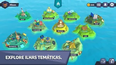 - Ilhas temáticas: navegue por ilhas temáticas, enfrentando desafios em formato de quiz.