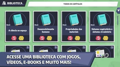 - Biblioteca diversificada: acesse uma biblioteca repleta de recursos, incluindo animações, jogos, vídeos, e-books e muito mais.