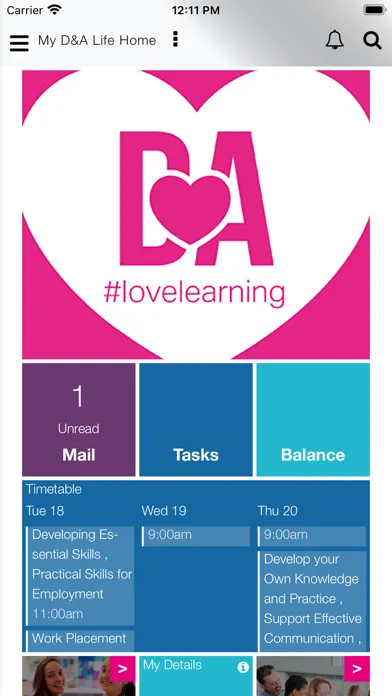 The My D&A Life mobile app provides an easy-to-use, personalised and effective system for you to manage everything you need to make a success of your learning at Dundee and Angus College.