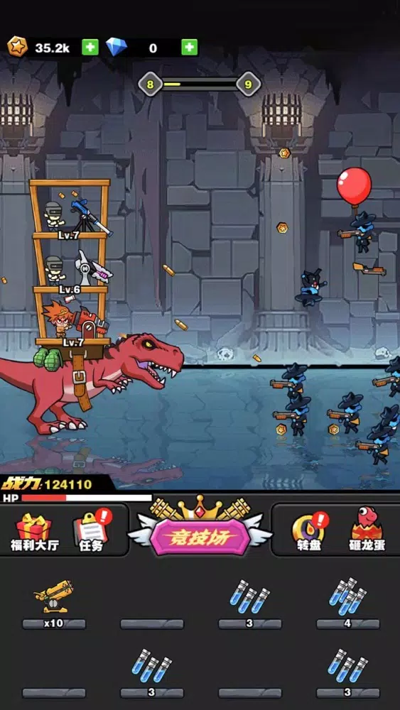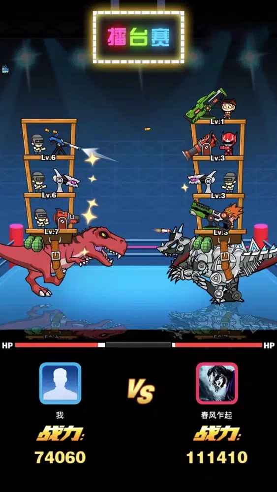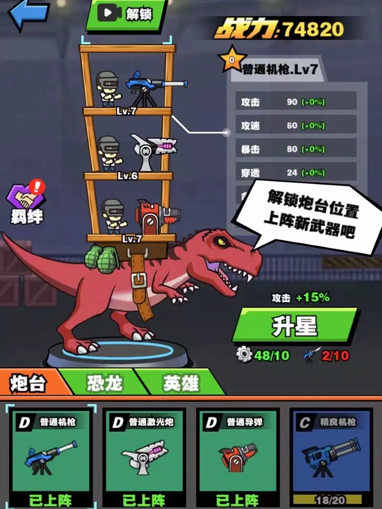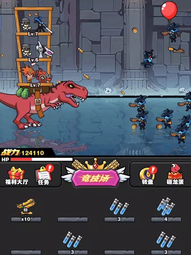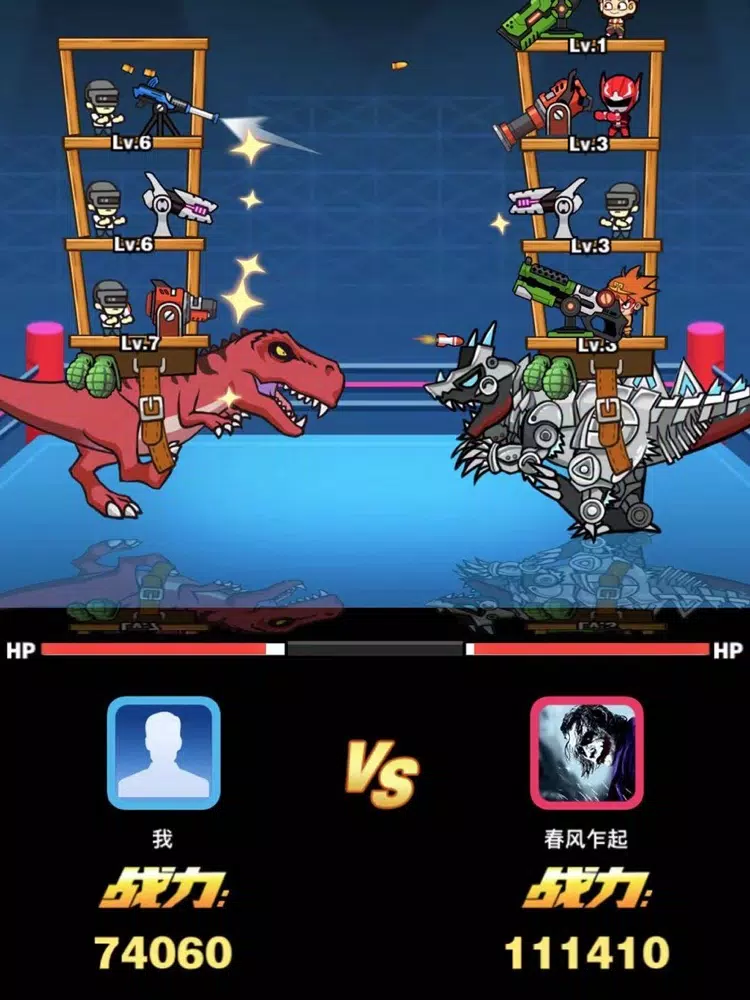 恐龙大炮游戏是一款休闲好玩的游戏,游戏的画面非常真实高清,玩家可以在游戏中,不断的升级合成更高的武器来挑战boos,也可以在解锁关卡后,挑战副本pk,玩家可以通过不断的对别人发起挑战,在战斗中不断升级,游戏中还有很多武器玩家可以给小恐龙装上,提高战斗力。