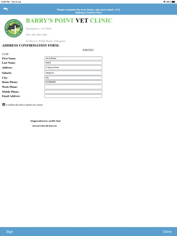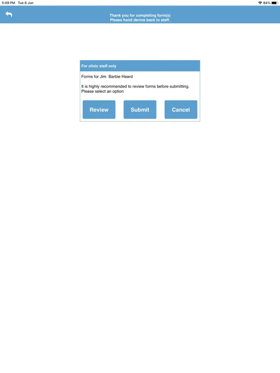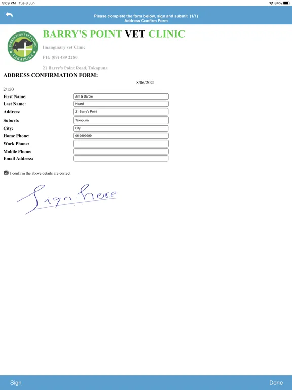 Once the consent forms are signed and “accepted”, the tablet is handed back to a staff member who then checks the client has filled in everything required, after which it is submitted to VETLINKSQL.