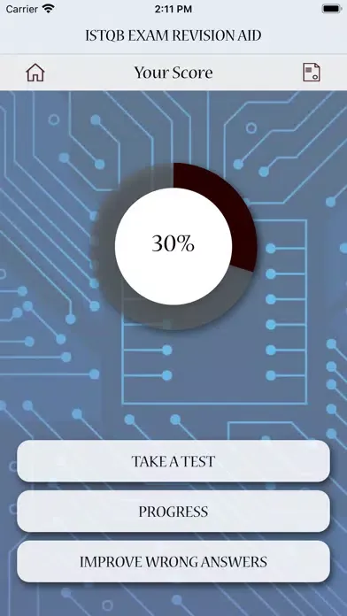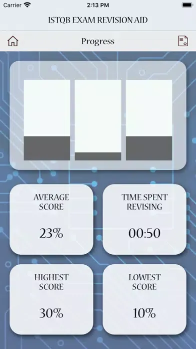In the PROGRESS section, the app will show you how much time you spent preparing for the exam and the progress that you are making.