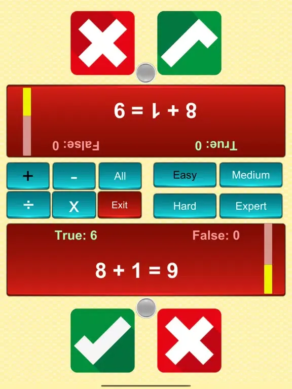 This math true false application is really easy way to learn math tables. They just need to identify that given math equation is true of false by pressing button.