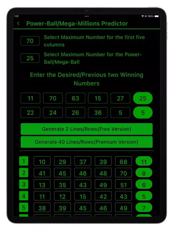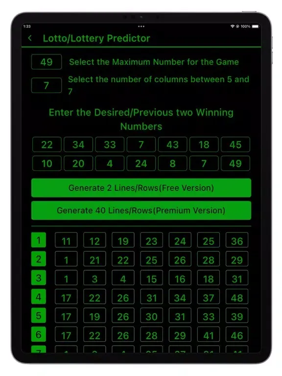 We have developed advanced methods to predict lottery numbers based on our ideas, adjustments, and mathematical calculations. However, there is no guarantee that the predictions made by this lottery predictor app will be correct.
