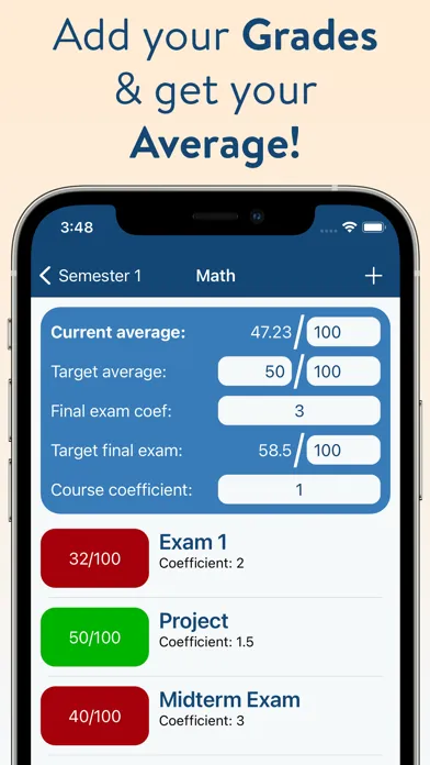 Because we all had that one teacher who gave us a grade over 42, "Average & Passing Grade" lets you enter your grades in the base of your choice, individually for each examination, for more personalization.