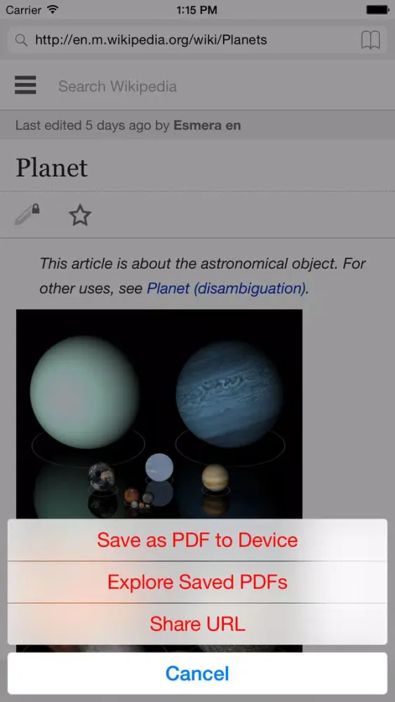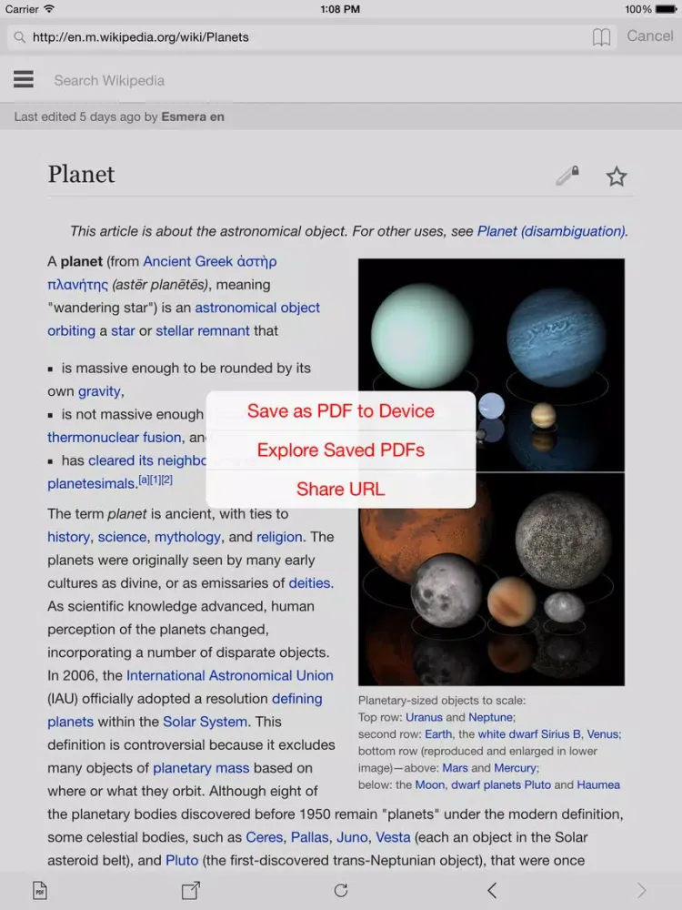 • Navigate on the web and convert any page to PDF for sharing and offline reading