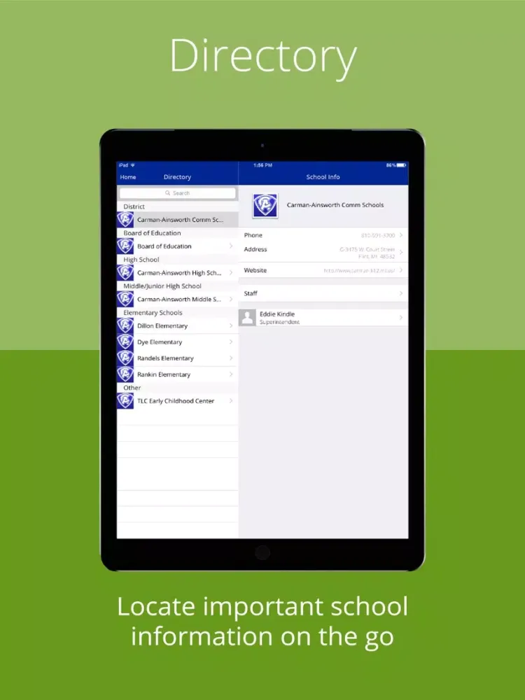 The official Carman-Ainsworth Comm Schools app gives you a personalized window into what is happening at the district and schools. Get the news and information that you care about and get involved.