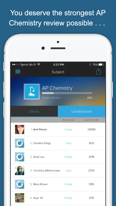 Brainscape has embarked on setting the highest standard for AP prep in the mobile community by partnering with educational consultants: The Science Guys. The idea is to mesh the complete College Board outline of material with clear explanations in a streamlined adaptive flashcard software, so you can study as efficiently as possible. The adaptive platform lets you immediately diagnose weak areas (which will repeat more frequently as you study) and avoid over-studying already strong areas (which will be sorted out for you). It also tracks your overall success throughout. This won't completely replace your books -- indeed, we still recommend doing practice problems separately -- but it's the mobile prep tool you've been waiting for.