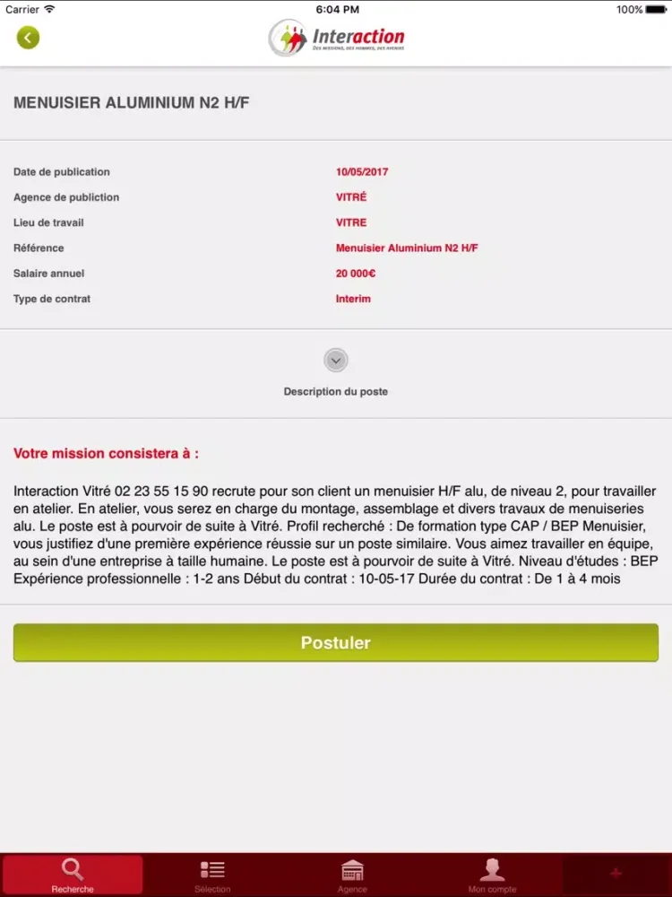 - La possibilité de postuler à des offres dans votre domaine