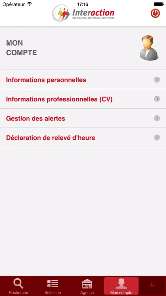 L'application mobile Interaction vous donne accès aux fonctionnalités suivantes: