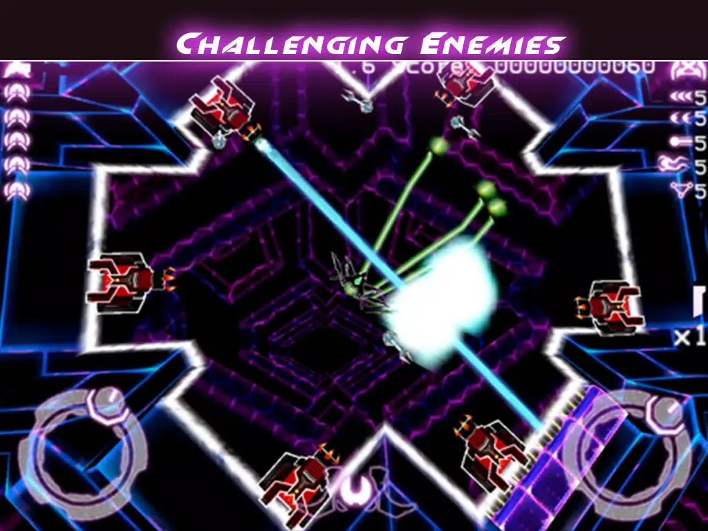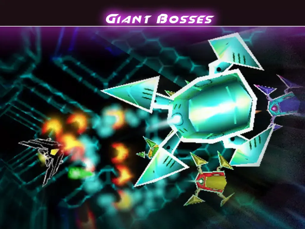Take command of Justice Ship Dnomn8r-3, and bring molten beams of truth and hot blaster justice to the Overmind's Cyber Circuit defense grid! Blast your way through waves of digital enemies and unbelievable bosses to reach the Overmind's inner sanctum and blow the rogue computer to bits and bytes!