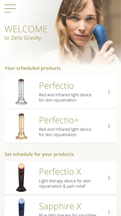 Zero Gravity's Perfectio app will create your facial treatment schedule and track its progress. Taking to account your age, skin type, wrinkle degree and gender, our application will a generate a treatment schedule to fit your needs. You can use the application to track the treatment time per each facial part while having the app displaying on the screen the exact section to work on. A quick access to our online guideline, videos, contact us information as well as having an option for social sharing.