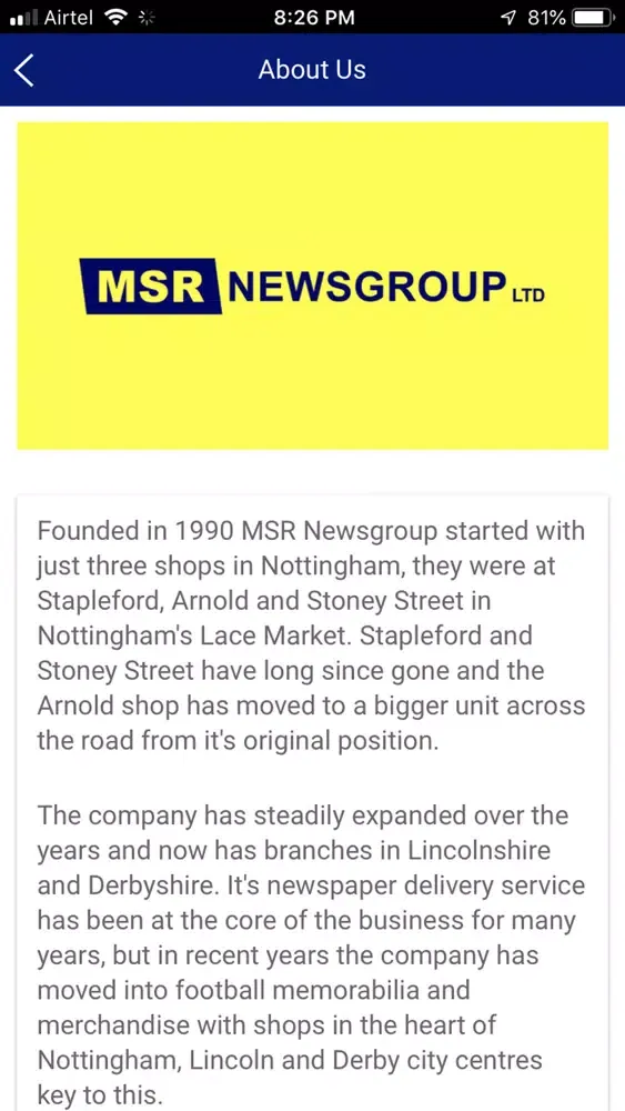 MSR Newsgroup, More Than Just A Newsagents. We deliver quality products at great prices across Nottinghamshire, Derbyshire, Lincolnshire & Leicestershire. Through our app you can order from our wide range of merchandise as well as ordering your newspaper delivery service from our regular drivers. With our new app service, all orders placed by 12pm will be delivered by tea time the following day.