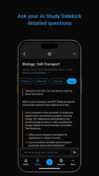 Flashcards & Practice Problems: Reinforce your learning with personalized flashcards and practice problems generated by the AI. Whether you're prepping for a quiz, midterm, or final exam, these tools help you review key concepts and improve your understanding.