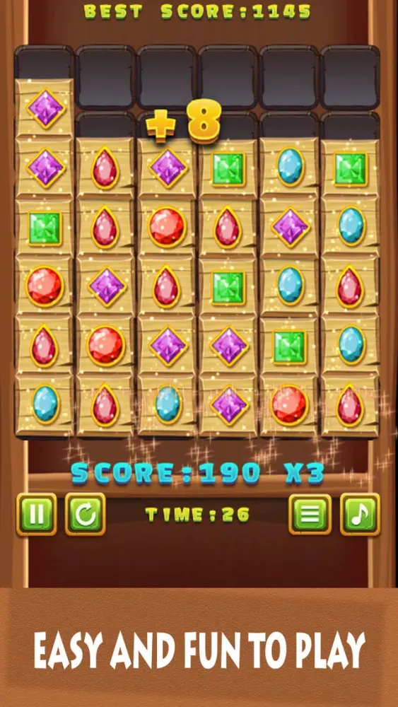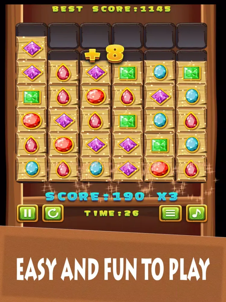This is a very cool and exciting match-3 game But be careful! It is not that easy to save all the toys while your times are limited, Game play is absolutely simple to suit everyone's taste, Just swap and match 3 or more same jewels to eliminate them, you will find it very challenge and save height score. Your talent in solving puzzles will be your best tool, Easy to play and pleasurable game for all age. Just tap to play, show your reaction speed and eliminate skills!