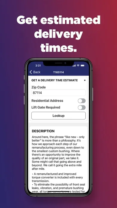 - Get estimated delivery times for orders