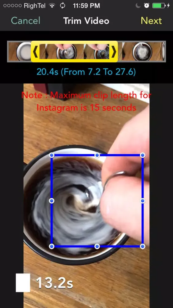 2- You can select the portion of the video that you want to post by trimming it so that you you’ll be saved from the hassle of “Trim & Crop" in Instagram,