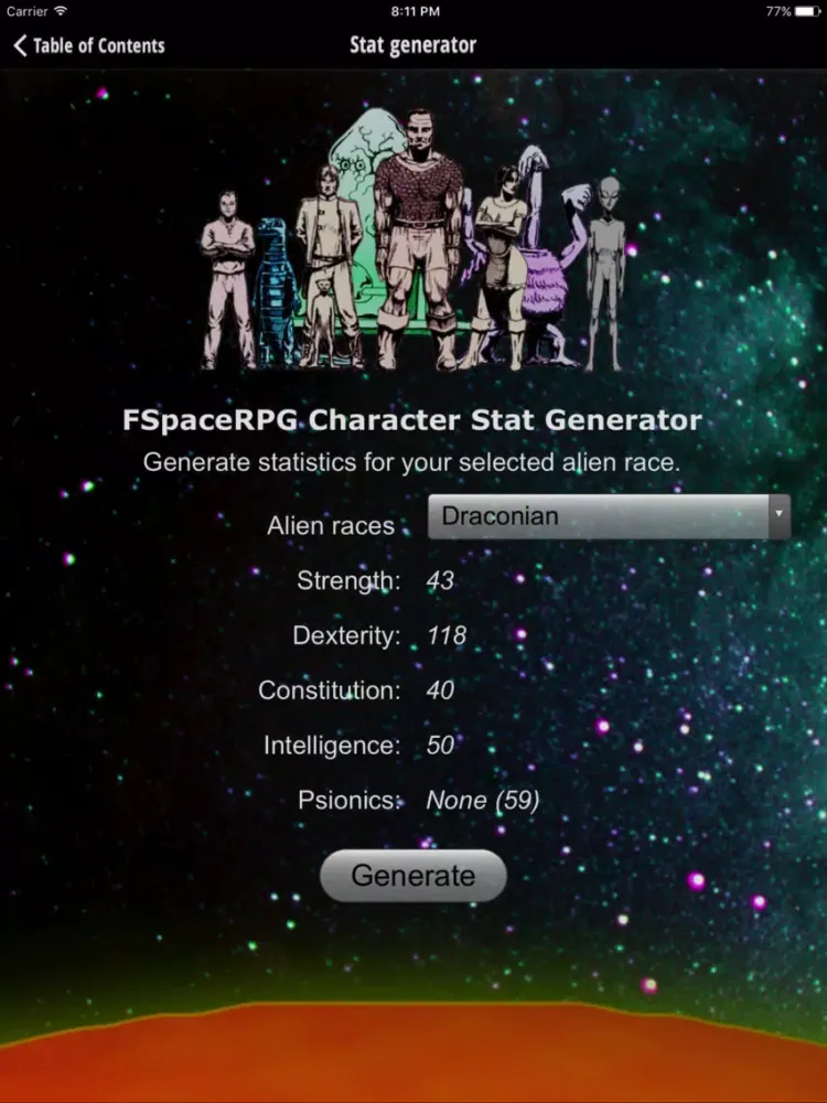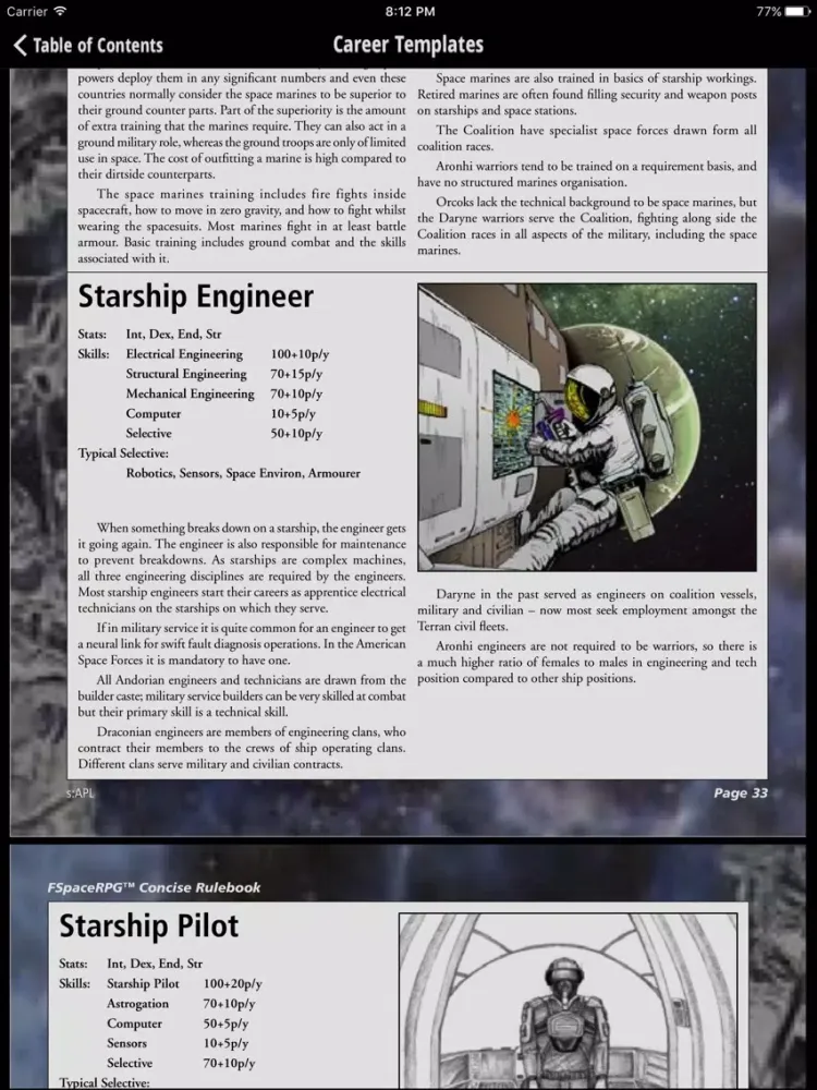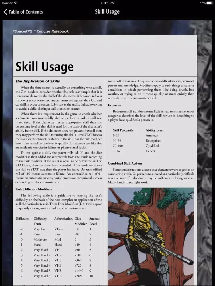 FSpaceRPG is a science fiction ‘book and dice’ based traditional roleplaying game in the classic mould. Now packaged up as an ebook app along with a range of tools that replace the functions of dice where applicable.