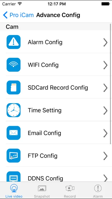 Pro iCam simplifies the user to use IPCamera, without cumbersome network configuration, can be easy to watch the live video in the phone, support two-way voice intercom (subject to camera support), support for screenshots, supports real-time recording and playback.