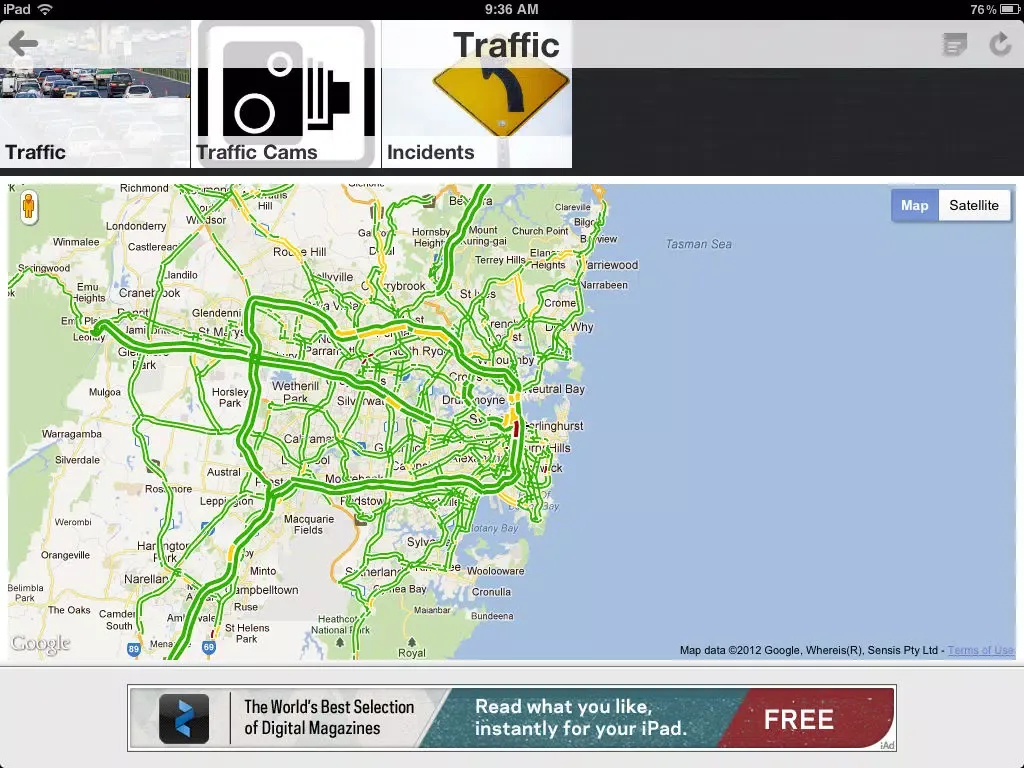 Tangkapan layar Sydney CityMinute iPad