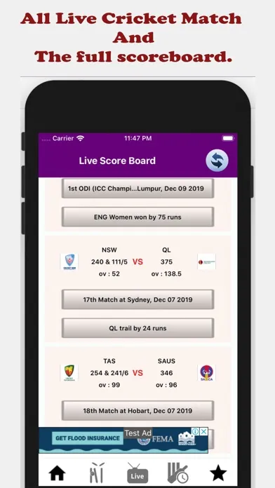 - Notifications for Live Cricket Score and breaking news.