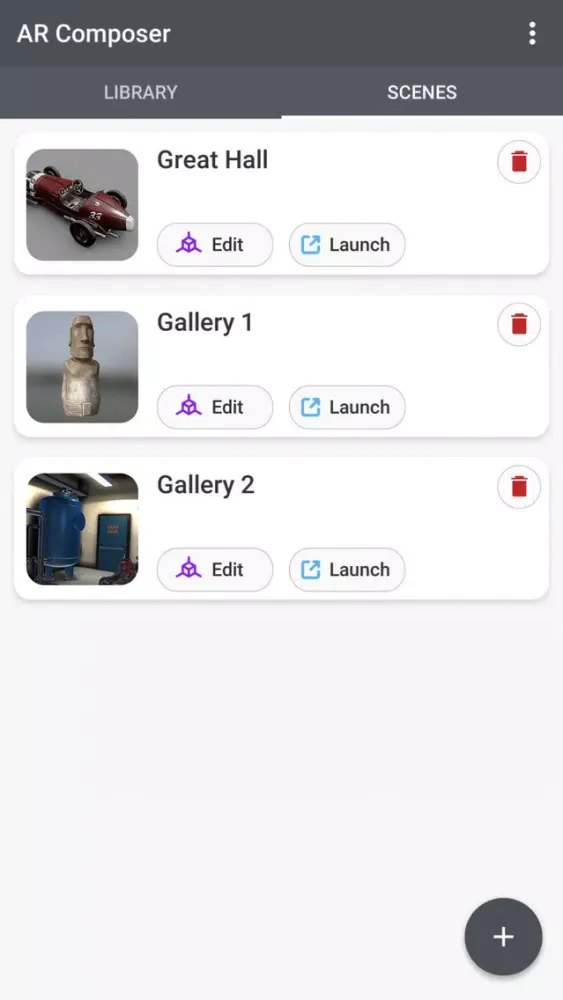 AR Scenes are composed of one or several digital objects that can be placed in any position thanks to a 6-DOF (Degrees Of Freedom) controller. Each object’s position is stored in the cloud and sharable on multiple devices.