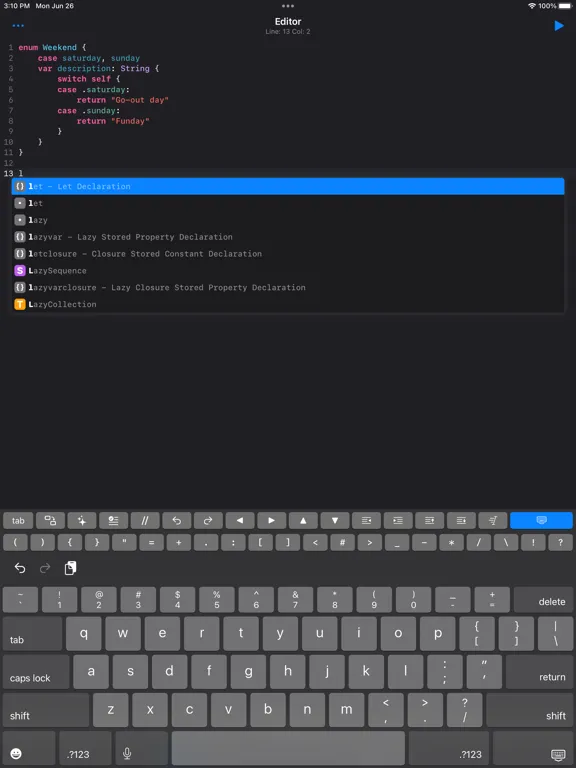 Swifty Compiler app is a great way to get an algorithm or method down on the go and make sure it works.