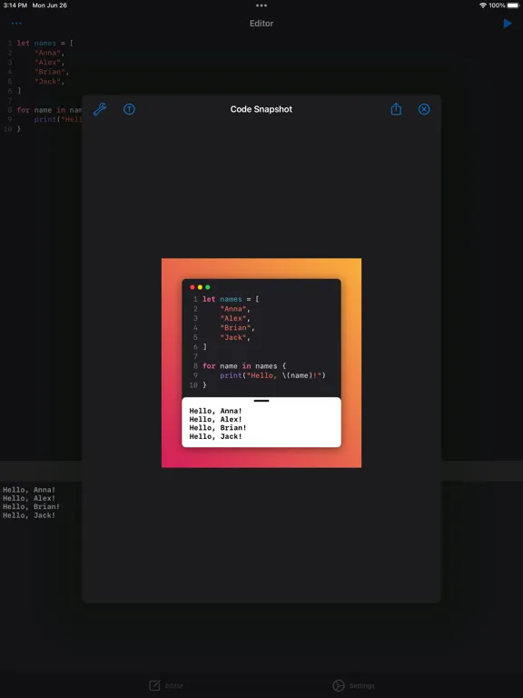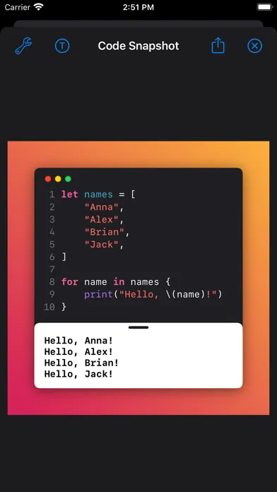 • Code Snapshot (PNG, JPEG, HEIC or PDF)