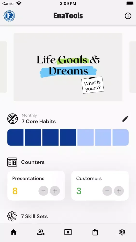 EnaTools is a professional network marketing activity book in an app! Tailor-made for Enagic® Independent Distributors. You can set your goals & dreams pictures, track your core habits, manage your prospects with ease, view videos, have a glimpse of product knowledge, and of course back up and restore your data on your own personal Google Drive account.