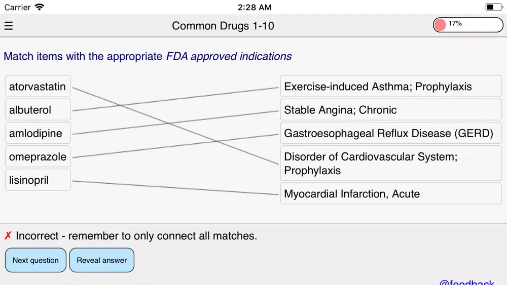 - Play through sets of commonly prescribed medications or choose a different drug class to practice everyday - It’s that easy!