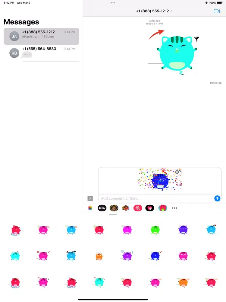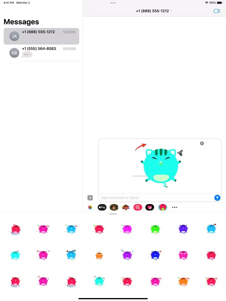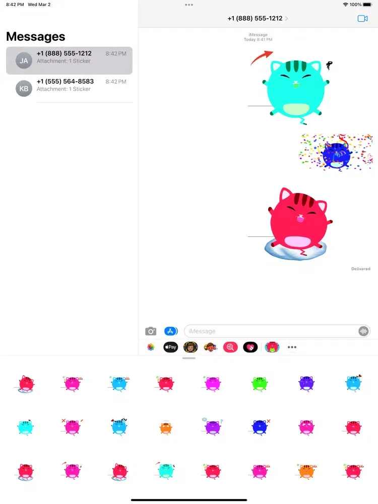 This pack includes over 50 animated bright colourful rainbow cat stickers. Make your conversations cuter. Get them now and share them!